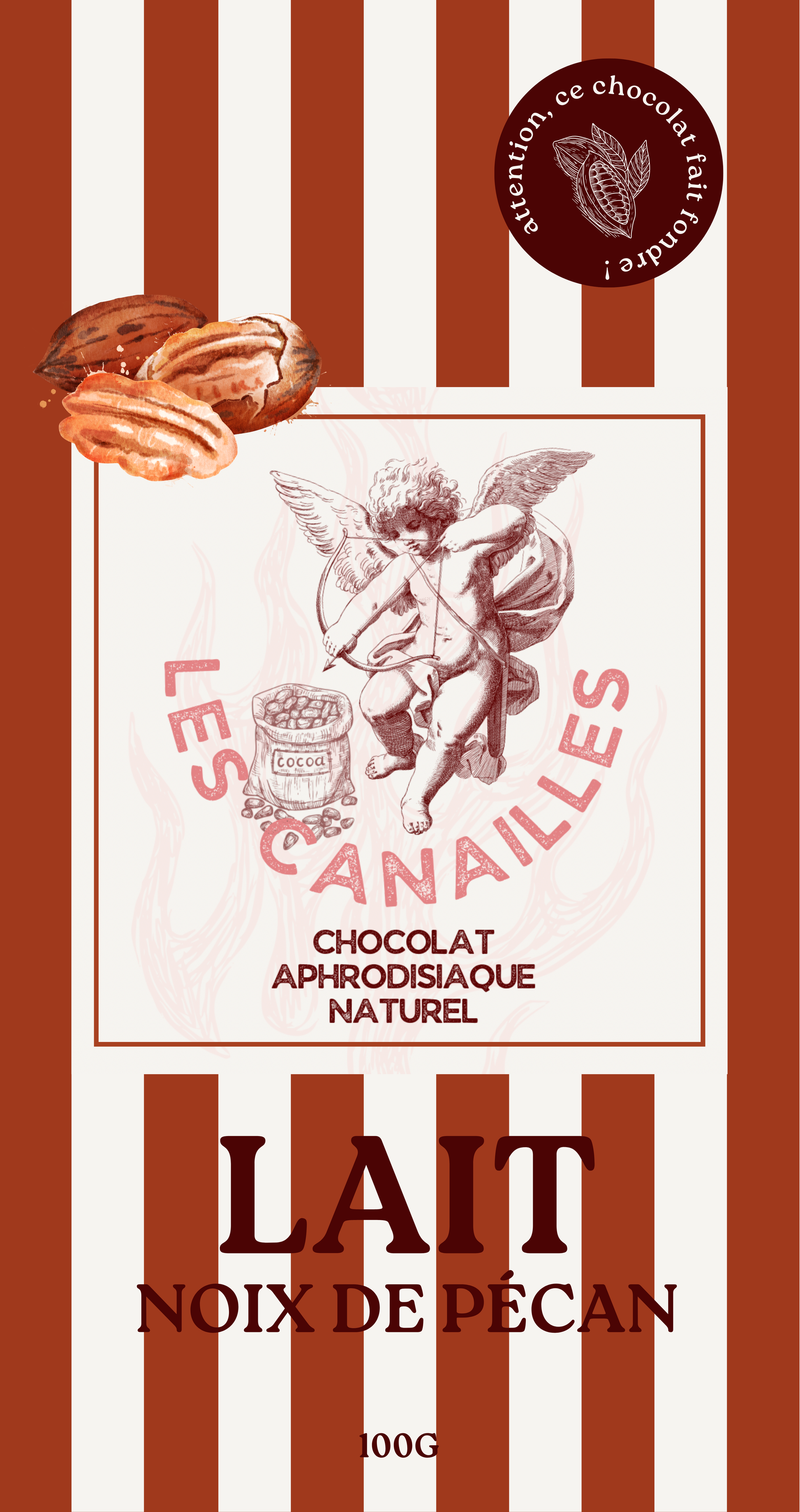 Tablette chocolat aphrodisiaque • Lait, Pécan • 100g