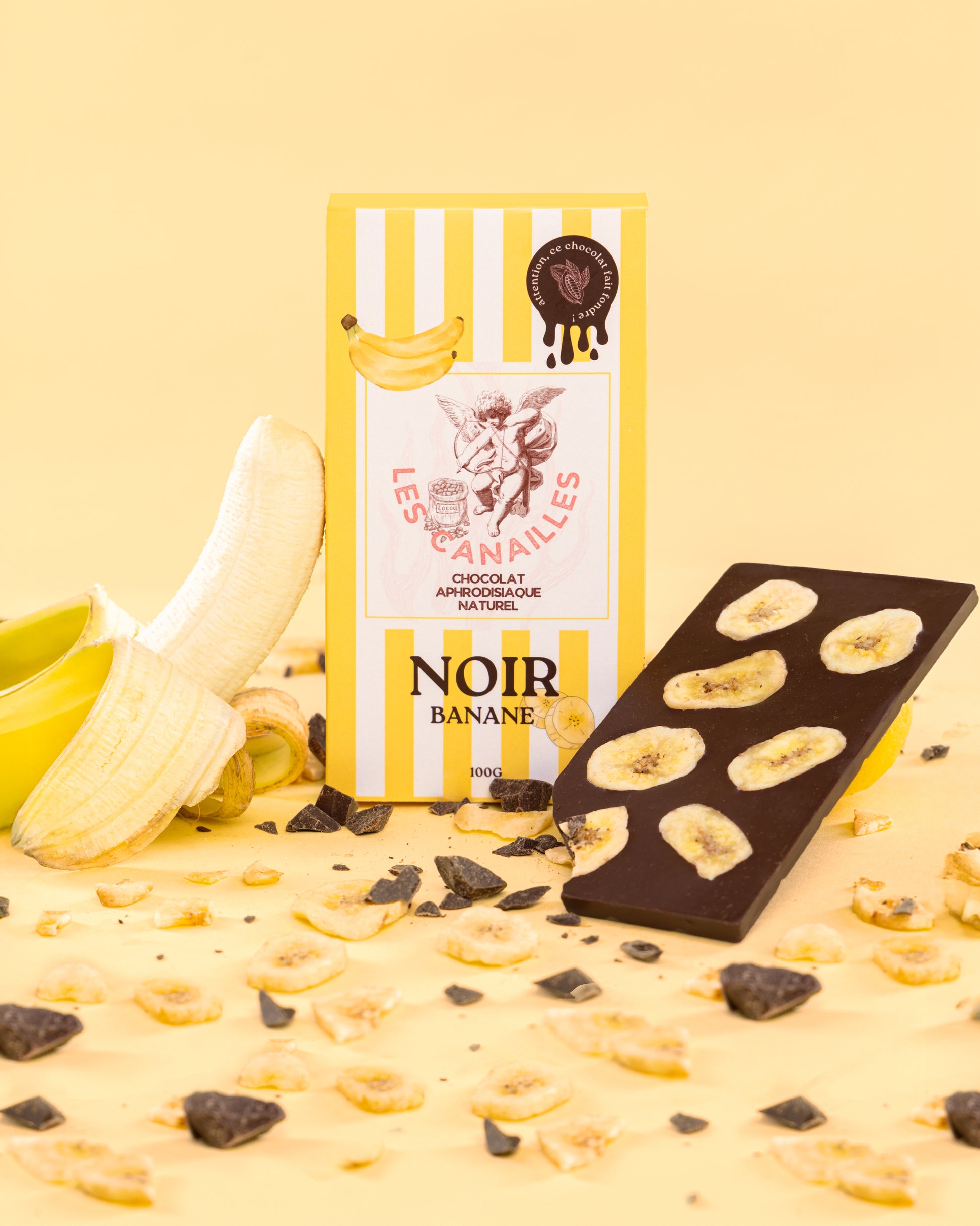 Tablette chocolat aphrodisiaque • Noir, Banane • 100g